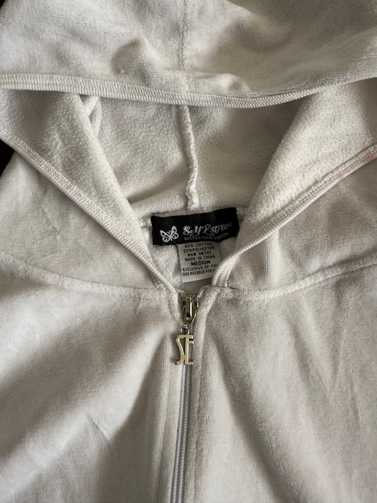 Vintage White Velour Zip-Up Hoodie Sweatshirt- M