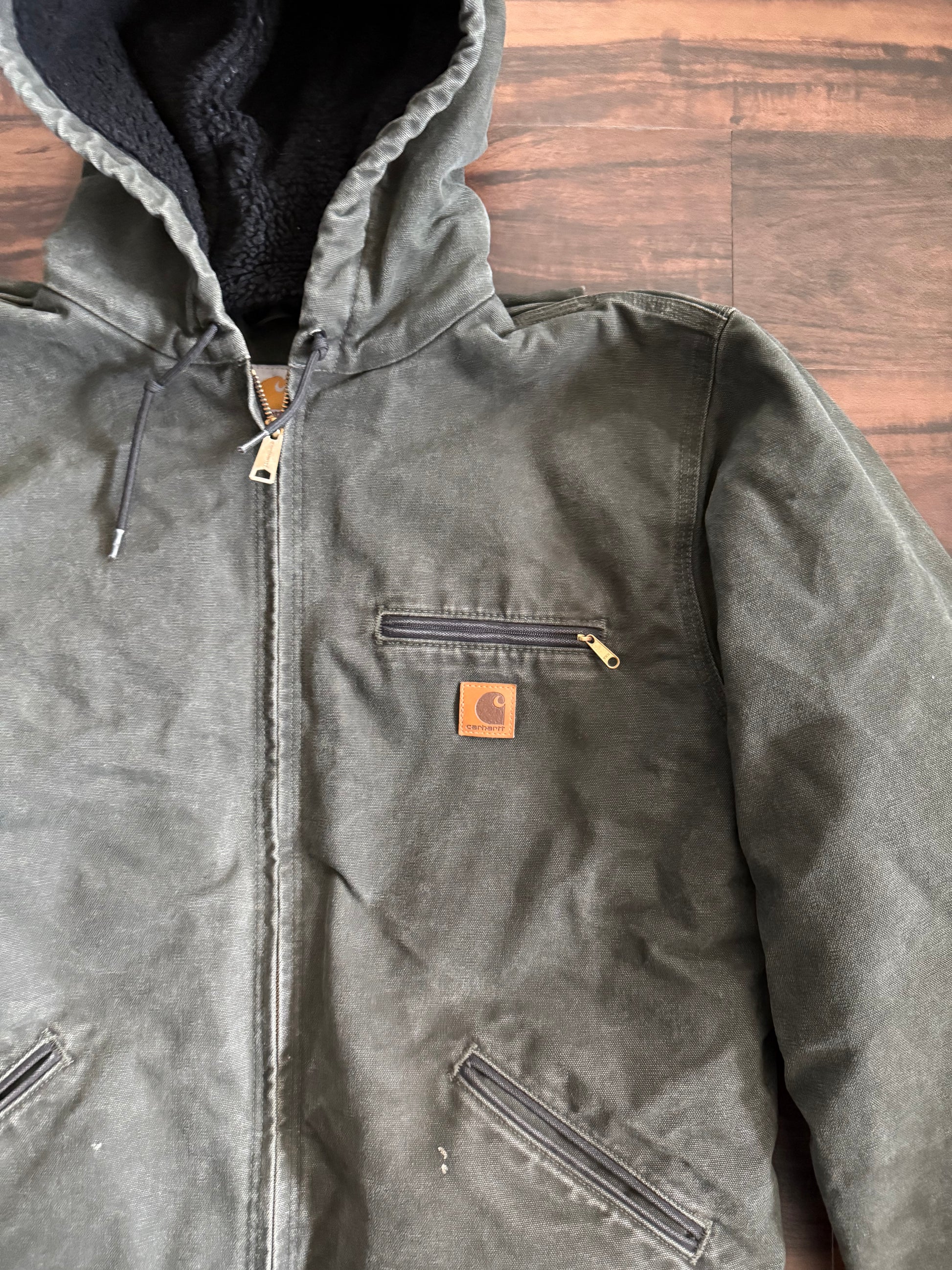 Vintage Carhartt J141-MOS Hooded Fleece-Lined Jacket- L