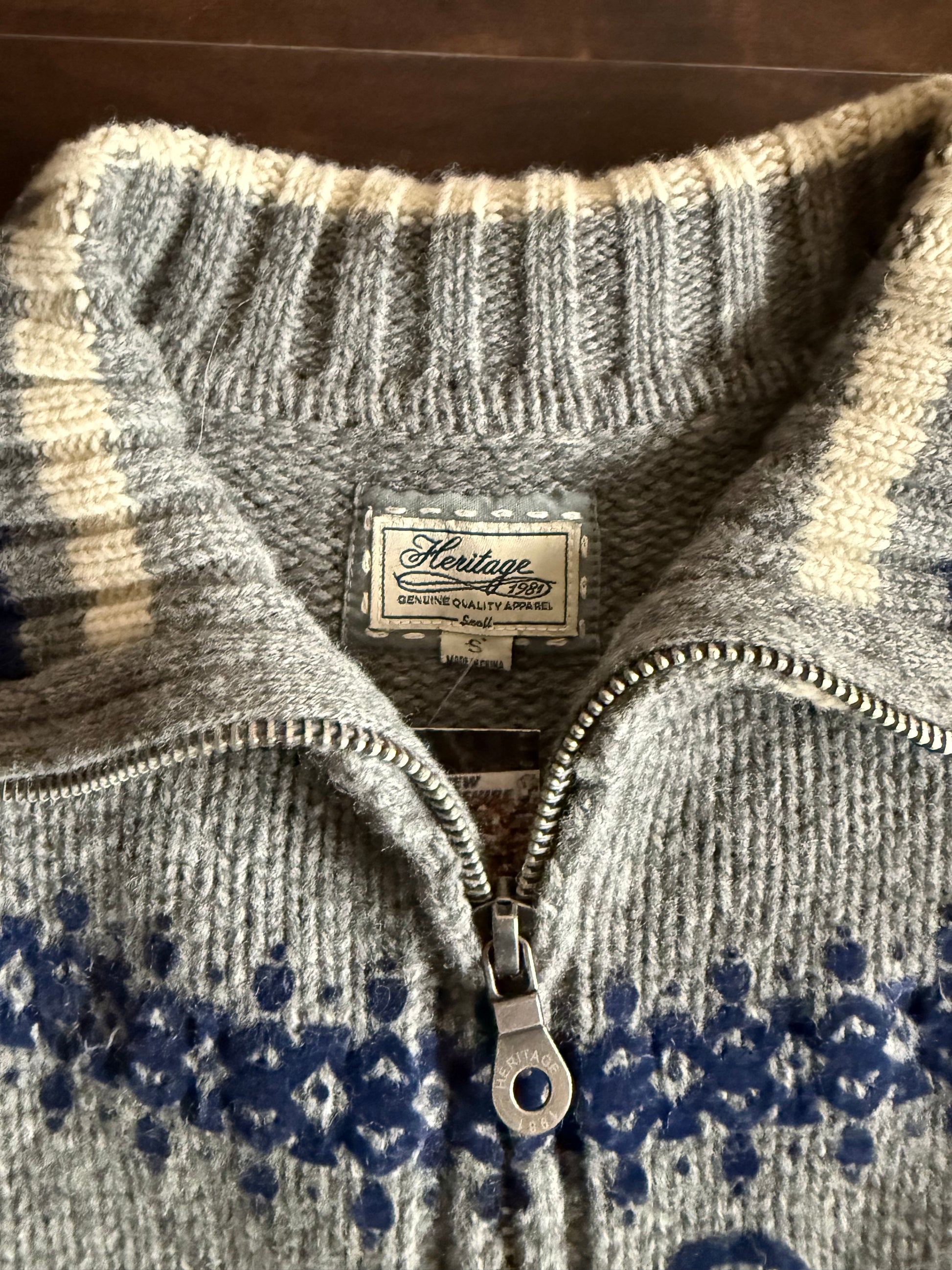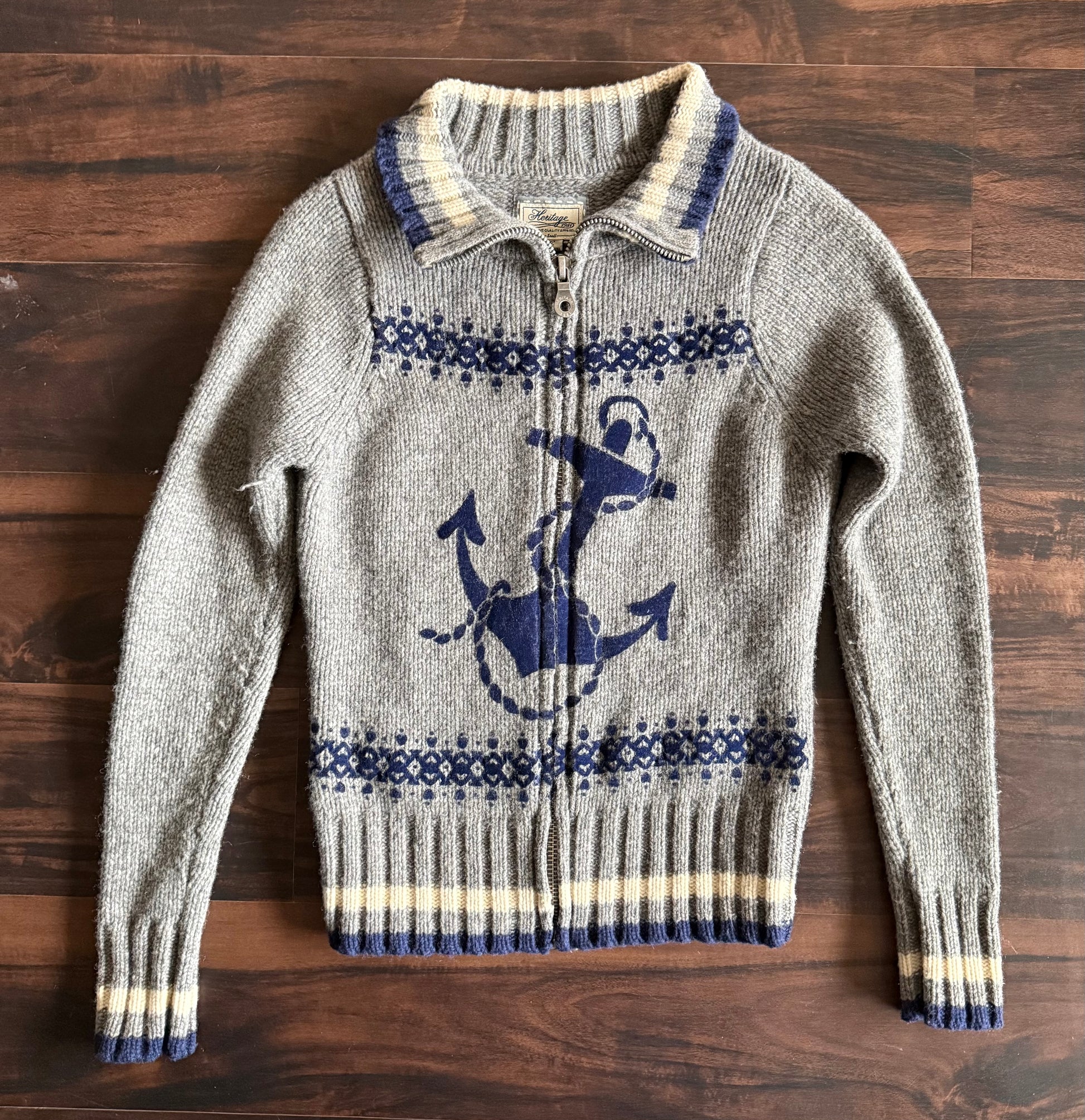 Vintage Heritage Collared Anchor Navy Zip-Up Sweater- S