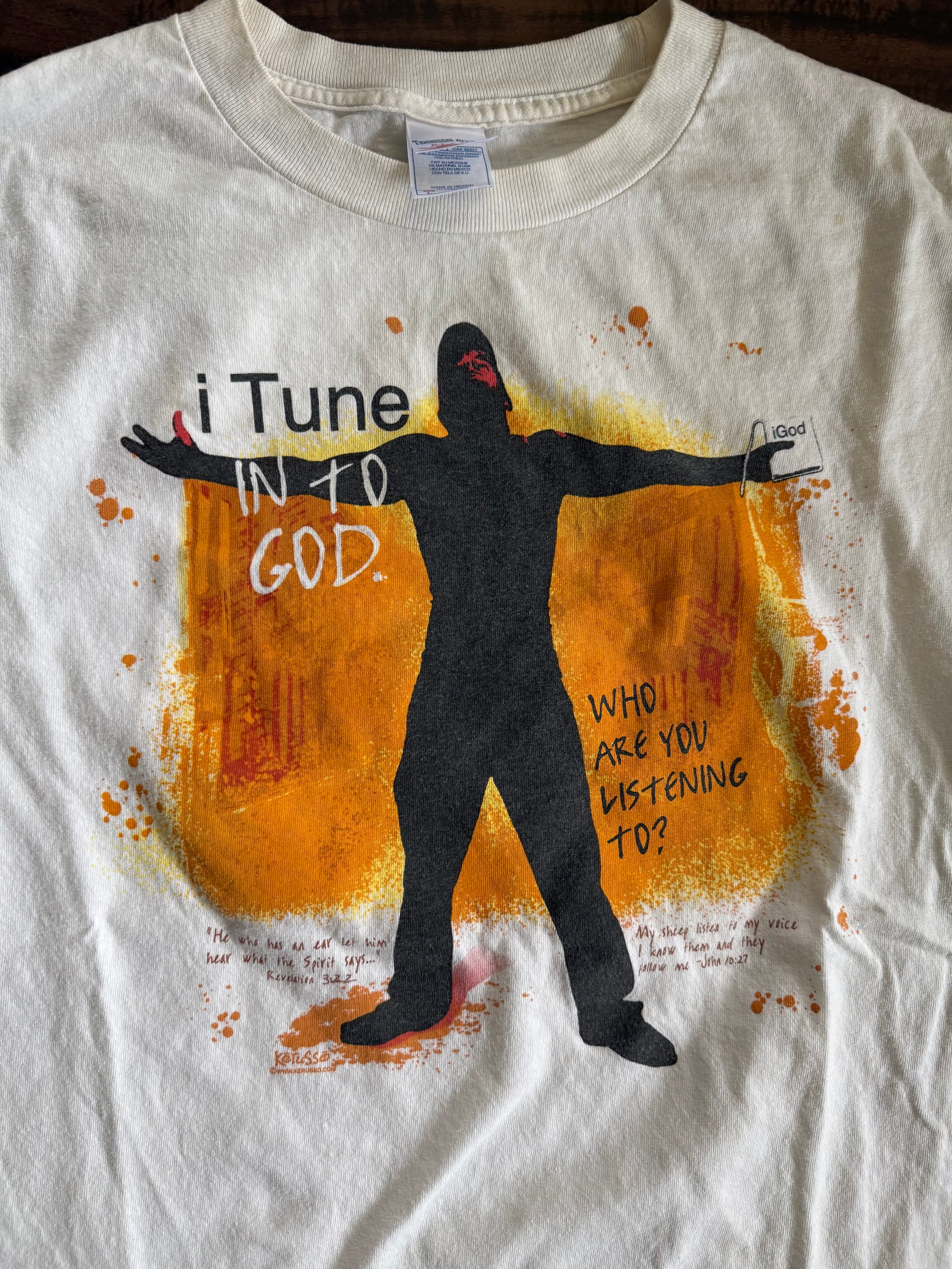 Vintage i Tune In To God Apple Jesus T-Shirt- L