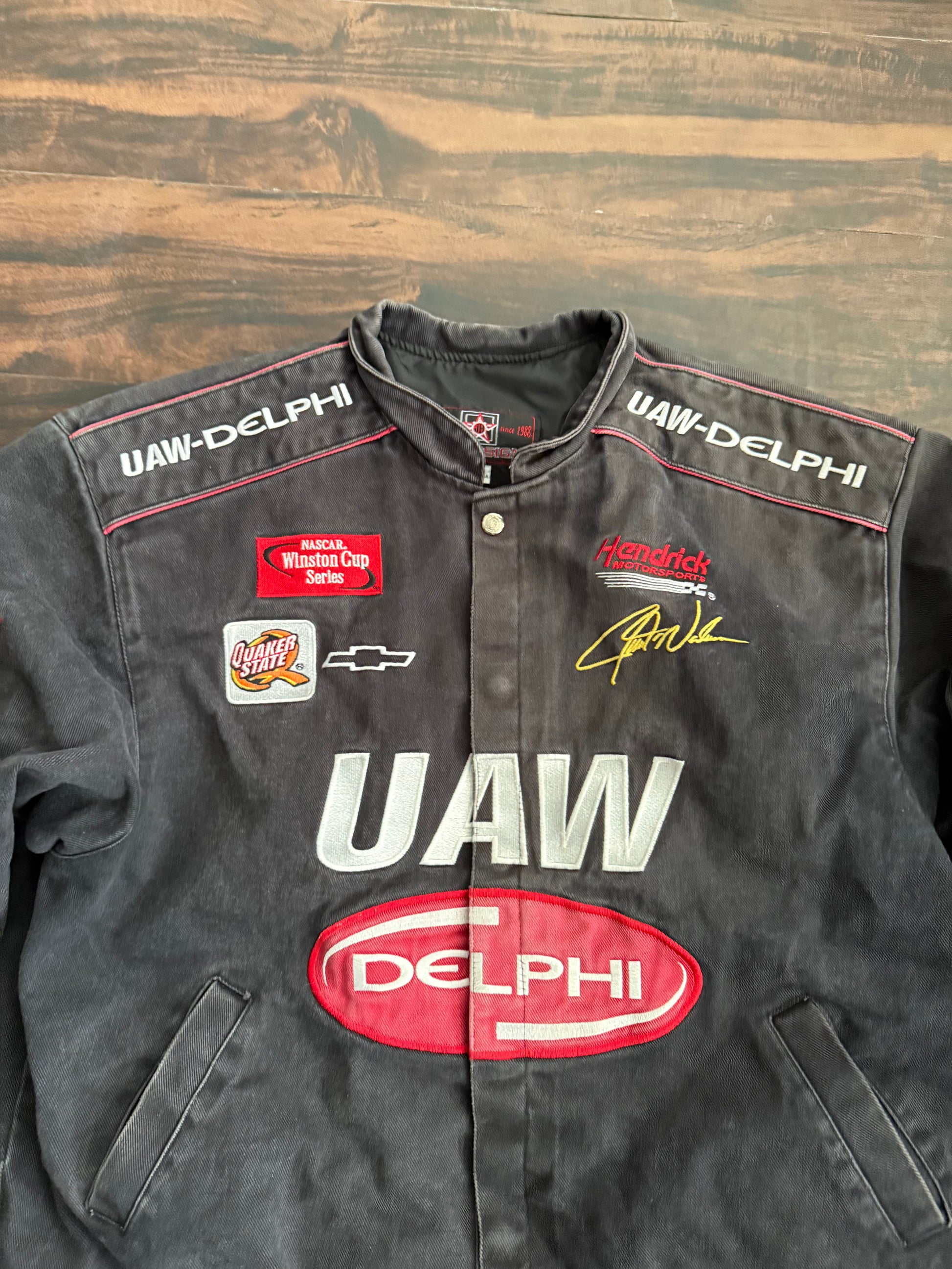 Vintage Jeff Hamilton UAW Delphi Black Racing Jacket- XL