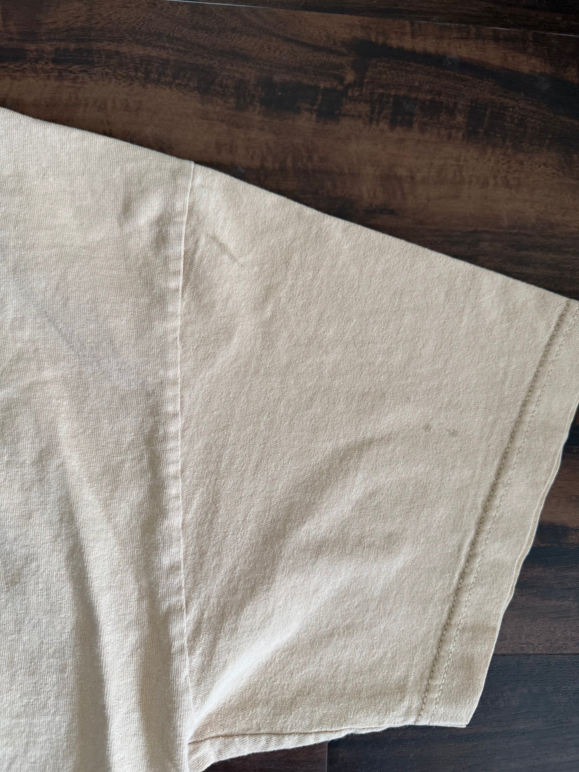 Very faint stains on bottom of the front and sleeve (pictured)