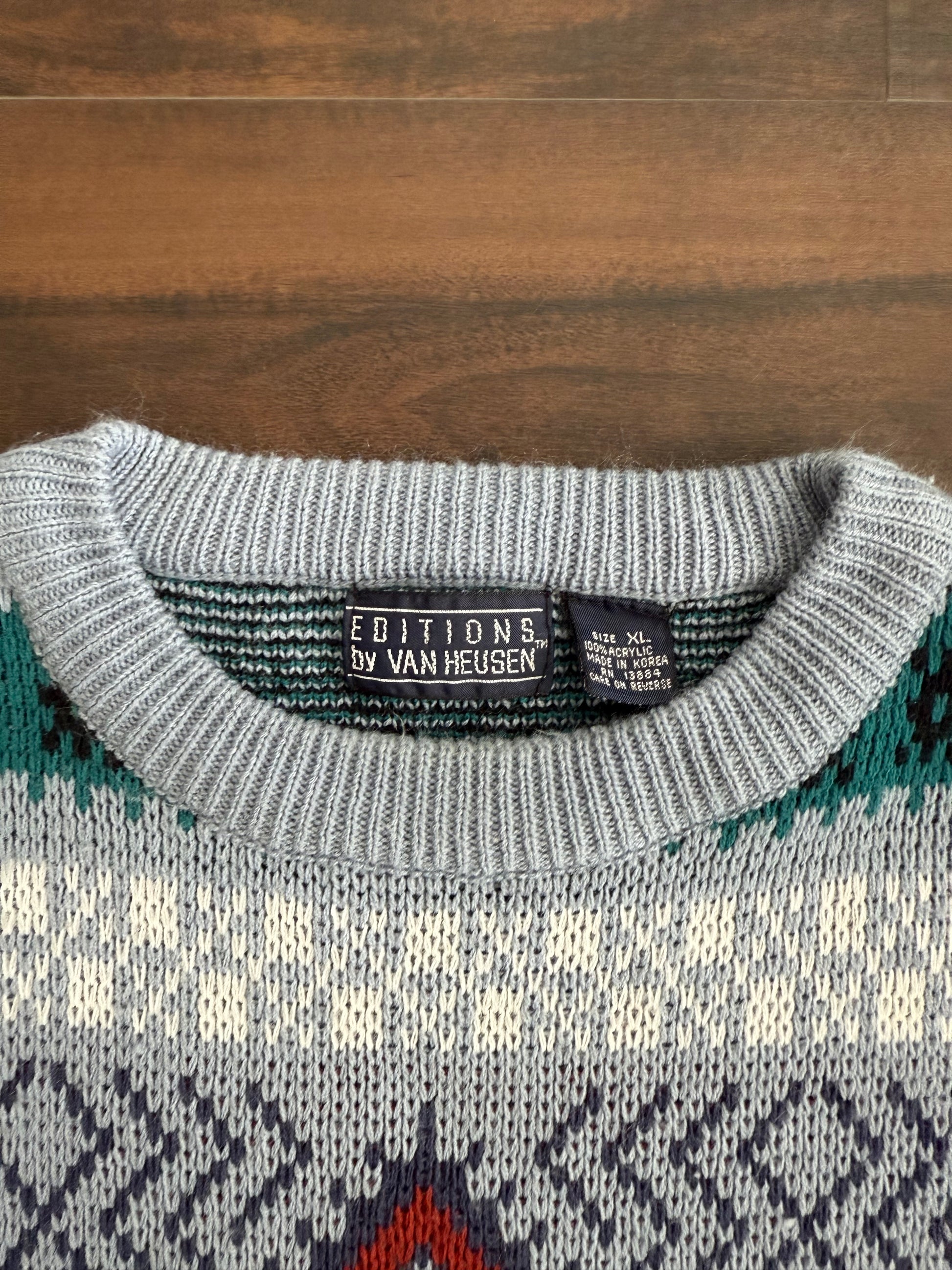 Vintage Patterned Gray Crewneck Sweater- L